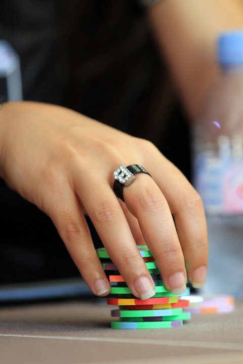 Mon objectif reste la belle, la grande, l’unique perf, comme tous les joueurs de poker. Je vais faire les championnats du monde des Ladies, que je prends d’ailleurs comme un tournoi identique aux autres. Juste un petit mot. Au poker il n’y a pas de femmes, pas d’hommes, pas de grands ni de petits, il n’y a que des joueurs, motivés par la gagne. Si les hommes ont toujours des préjugés contre les femmes, tant mieux. Mais j’avoue que de mon côté, ce que l’on peut lire ou entendre (machisme etc…), je ne l’ai pas vécu! Les hommes m’ont toujours respectée et bien accueillie à table. En revanche il faut apprendre à jouer contre les femmes comme il faut savoir manoeuvrer les hommes. Poker is poker. Et souvenez-vous d’une chose : au poker, on joue pour de l’argent. C’est le milieu qui veut cela. Si vous l’oubliez, vous êtes perdu. Dernière chose, sur mon signe fétiche Indalo. Oui, il est présent sur moi, toujours en tournoi. N’allez pas vous imaginer un tatouage au creux de mon épaule… C’est un petit bijou.