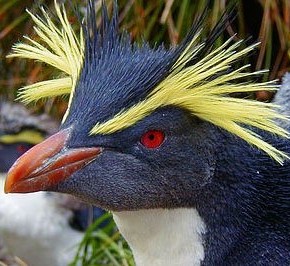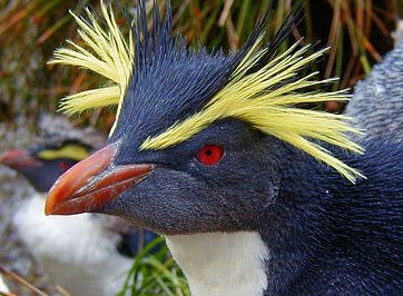 Le gorfou macaroni, oiseau qui vit aux îles Sandwich. Un drôle d’oiseau en kodackrome…