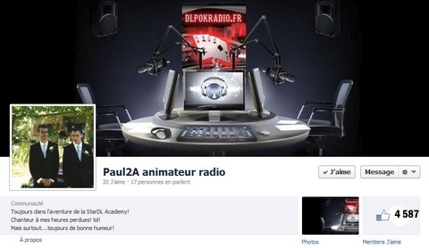 Quel succès, quel talent ! Alors que sa radio (la DL Poker) enregistre près de 1500 affiliés, Paul2A, qui vient de créer sa page Facebook, a recueilli en 15 jours 4587 signatures. Presque assez pour briguer la Présidence. Sinon du continent, du moins de l’Ile de Beauté…