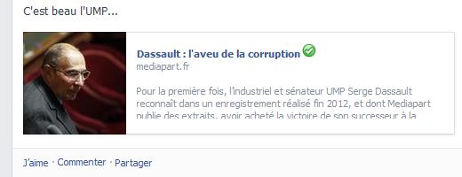 Ceci n’est qu’un exemple entre mille. Droite, gauche et centre unis dans la même imbécillité. Quand je lis sur les murs « d’amis FB du poker » des âneries partisanes du genre (voir capture ci-dessus)… mais quelle image croient-ils renvoyer vers les gens qu’ils fréquentent ? Comment peuvent-ils croire un seul instant que cela fera avancer leur cause d’un iota, les prochains scrutins d’une seule voix ? Comment ces gens, qui réfléchissent apparemment par eux-mêmes, peuvent-ils dispenser des « informations » commentées de façon aussi puérile ? Leurs murs FB sont comme des mobiliers urbains JCDecaux. A peine collés, les messages sont recouverts de Tags, d’une grosse blague ou d’un freeroll à venir ! Et surtout, Serge Dassault n’a rien à voir avec le jeu ou le poker. Pour être crédible, il leur faudrait partager les scandales de tous les bord. Mais là, afficher Dassault et occulter en ce moment, Fabius et Cahuzac, c’est du niveau tout petit militant-colleur d’affiches, non ?