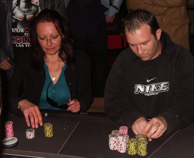 Cette photo a laissé dubitatif notre cher Vice-Président, le Sieur Patrice Bénardais… En effet, de voir sa fille ainée, Marie, poser avec le Président Loulou Kéké (du club adverse) a laissé son imagination galoper. Il en a d’ailleurs immédiatement parlé au directeur du Casino Barrière, (M. Christian Vitalis) qui l’a rassuré à cet égard ! A 14 heures, Ollivier Nivet a rassemblé ses troupes puis a laissé à Patrice le soin du mini-discours de bienvenue et du lancement de la battle. Quarante joueurs se sont affrontés, femmes et hommes à égalité ou presque, jeunes et anciens mélangés et placés à peu près au hasard… Une table de requins, une table de joueurs plus récents et 2 tables classiques.
