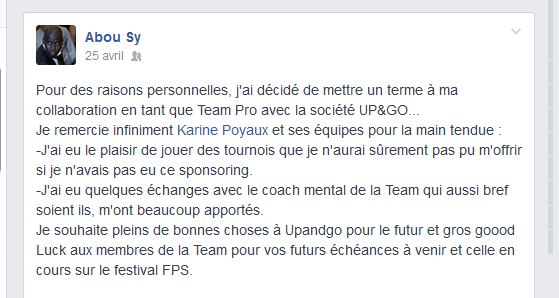 25 avril, statut démissionnaire d’Abou Sy via réseaux sociaux.