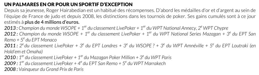 L’agence de relations publiques de Big Roger est très active et très efficace. Janluk les a d’ailleurs rencontrés en son temps et avait loué leurs efforts et leur sérieux. Par contre, Big Roger a changé de cap depuis sa rencontre au cercle Clichy avec JLB. Il ne parle plus de sport, mais devient d’un trait de plume l’ambassadeur toutes catégorie du poker tourisme mondial ! On peut se dire chouette ! La langue des diplomates restera française… Mais l’accent marseillais risque d’apporter une fausse note, une note « exagerato non-moderato » au fameux langage consulaire modéré !