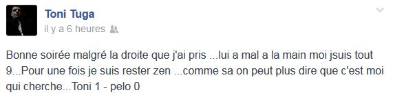 Expulsion ! Autant les encouragements de Koraly sont justifiés et de bon thon ton (Sébastien, sors de mon corps), autant le coup de tête de Toni sur le poing d’un supporter adverse est inacceptable !