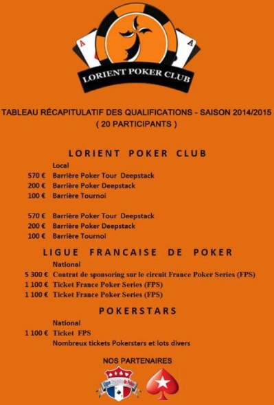 Un petit coup d’œil sur les qualifications, parmi les plus prestigieuses : les FPS de PokerStars et le Barrière Poker Tour Deepstack. C’est bien sûr indiqué sur le site et le Facebook du LPC, mais un petit rappel pour vous redire la qualité de celles-ci n’est pas inutile pour ce Club qui entend prendre sa place, parmi les plus importants et les plus prestigieux… C’est très bien parti et nous sommes certains que leur choix et leurs ambitions seront très vite récompensés.