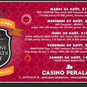Buy in modérés : Dés le mardi 26, tournoi à 100 euros… Seulement 60 € pour le bounty du mercredi. Un petit billet de 25 € + Rb et Ad-on, c’est le jeudi 28 août ! Main event 200…