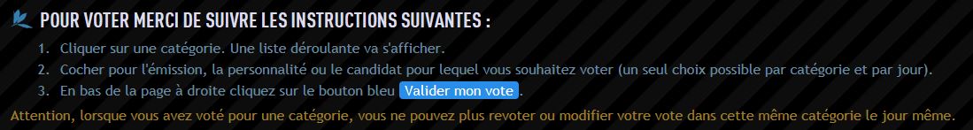 Ce qu’il y a d’intéressant, néanmoins, c’est qu’en se motivant, en se regroupant, en se stimulant, en se collu-zan, en se centralisant, en se ralliant, en se liguant, en se mobilisant… On peut faire des miracles ! Voyez notre ami Michel Pons, qui a gagné le package de Rankinghero et qui va gagner, nous en sommes certains, le tournoi en question et le challenge de 20 k€ allant avec la récompense du premier ! Alors, suivant les règles établies il nous est possible de voter plusieurs fois par semaine, en réalité, une fois par jour. Il suffit d’avoir un pense-bête en allumant votre ordinateur.