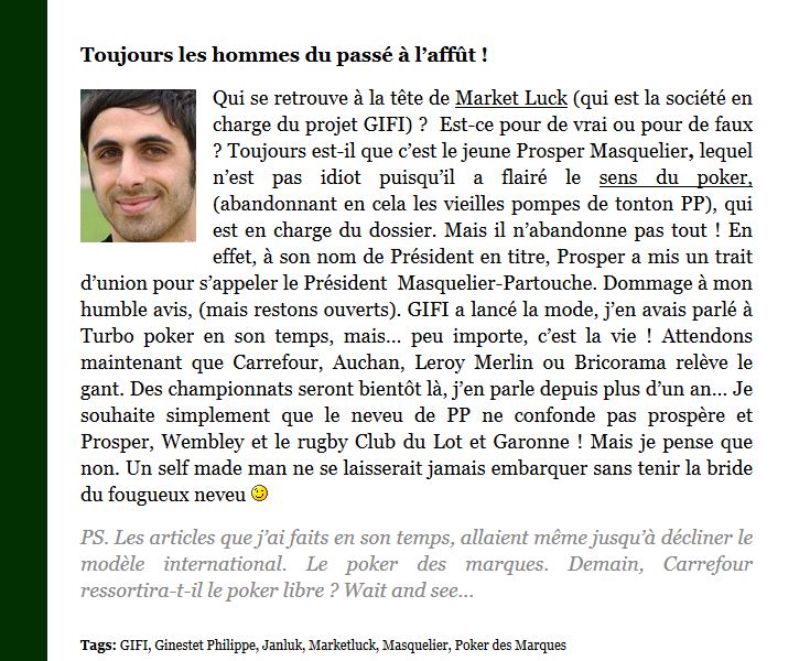 • Janluk dans JO. Médaille d’or pour le poker & Big Roger !