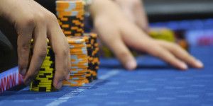 A player puts the chips during the final match in the Asian Poker Tour championships in Macau on Sunday, August 23, 2009. (Hon Siu Keung/EPN)