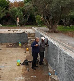 Ci-dessous, Roger donne la main aux maçons en vue de l’ouverture prochaine de la piscine, dans son restaurant :