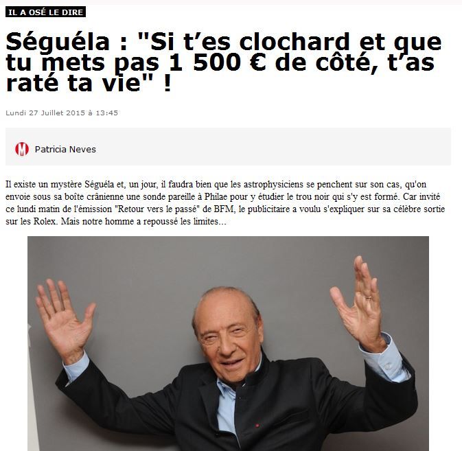 obscèneJe ne sais plus si c’était Karim (the Karim from Namur) qui m’expliquait que cette expression « Non mais allo, quoi ! » était extrêmement bien trouvée, en ce sens qu’elle exprime tout à fait le sens que que l’on désire y faire passer.  Je trouve aussi que Marianne exagère, comme souvent, en traitant Jacques Séguéla « d’obscène ». Mais Marianne a pour habitude de faire semblant de ne pas comprendre, afin de piéger ceux qui, malheureusement, ne comprennent pas pour… de vrai !