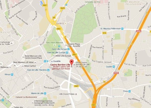 L’hôtel Casino-Barrière – Barrière de Lille- Carte sur le lien ci-devant et ci-dessous. Address: 777 Pont de Flandres, 59777 Lille. Phone:03 28 14 47 77. Du mercredi 23 au dimanche 27 juillet. A noter que Monsieur Roger Hairabedian, dans un souci de transparence, n’affrontera pas ses troupes au Day 1 B. Il s’inscrit dès le Day 1 A. C’est à dire le jeudi 23 juillet.