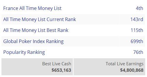Car avouez qu’un joueur qui a 3 lignes sur Hendon avec 2 M$ de gains ne vaudra jamais un joueur qui a 40 lignes Hendon, même si ce dernier ne cumule que 1M$ de gains. C’est mon avis que j’écris ici, car jamais personne n’en parle. Quant au choix de Patrick Bruel, je m’en suis déjà expliqué. C’est un choix marketing. Je ne le reproche pas, mais là, on ne parle plus de classement. »