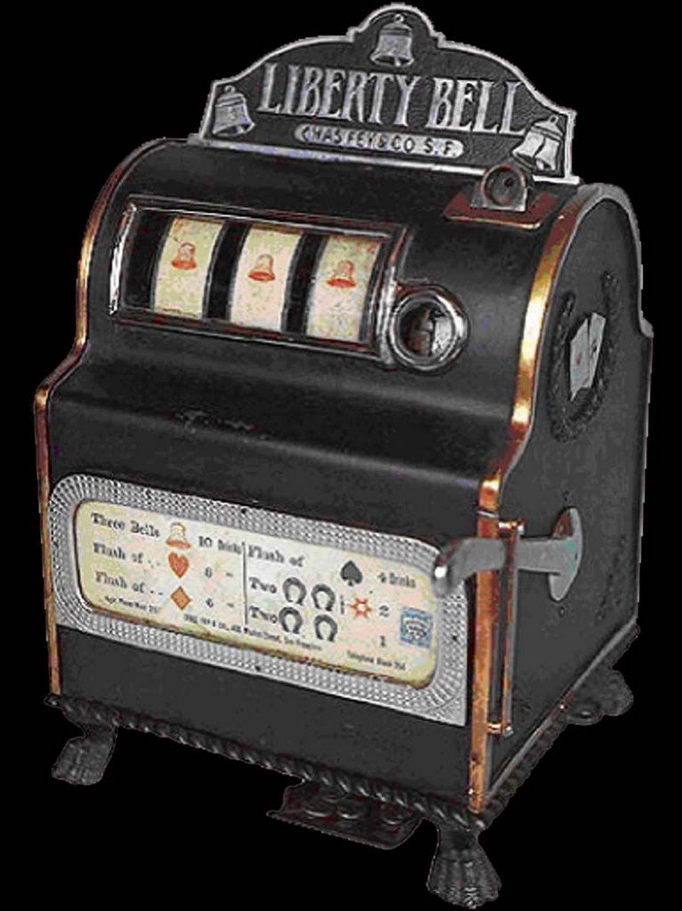 libertyLa Liberty Bell ! Elle ressemblait d’avantage à une caisse enregistreuse des années 60 qu’à un bandit manchot du XXème. La Liberty Bell, première machine à sous, porte le nom de son inventeur (marqué entre les 2 cloches)  : Charles A. Fey. Les « Slots machines » en anglais (ou bandits manchots) portent bien leur nom. C’est à San Francisco qu’elles ont vu le jour, il y a plus d’un siècle, en 1898. La Liberty Bell a connu un énorme succès qui a révolutionné les salons de jeux de l’époque. D’une part, parce qu’elle était beaucoup plus petite que ses consœurs en bois.  D’autre part, parce qu’elle possédait un marquage sur la périphérie des 3 rouleaux et non plus à l’intérieur. Alors que les machines à « roulette » n’offraient qu’une centaine de combinaisons, la Liberty offre désormais 10 arrêts par rouleau. Cela signifie 1000 combinaisons possibles au lieu de 100.