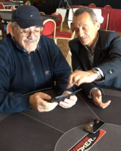 Alors imaginez ! Deux hommes (un parrain et un directeur des jeux) qui se rencontrent ? Ou ils se taisent, ou ça tchatche des heures ! Car lorsque Roger rencontre Marion, Christian, Janluk, Olivier, Patrice et Roinito, ça fait des étincelles. Pas question d’égo ou de disputes sur ceci ou cela. Les idées affluent, se confrontent, se scindent ou se mélangent pour le plus grand intérêt du poker, et après, éventuellement, pour nos intérêts respectifs. Car un ambassadeur, un parrain, des membres d’honneur sont là pour donner certes, mais ne pourront continuer à donner que le fruit de leur labeur.