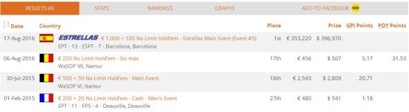 Pour la première fois, un français s’impose à l’Estrellas de Barcelone. Mohamed Samri devra s’y faire. Aux Premières je veux dire, car avec Roger Hairabedian, les Premières sont légions. Et on y prend goût ! L’Estrellas Barcelona, rien que cela : le français (Momo comme les membres de la Team Big Roger le surnomment affectueusement), s’impose après deal pour empocher la modique somme de 353.220€ ! Il lui aura fallu batailler des heures et venir à bout de plus de 3500 joueurs pour décrocher son premier titre. Sa quatrième ligne Hendon Mob.