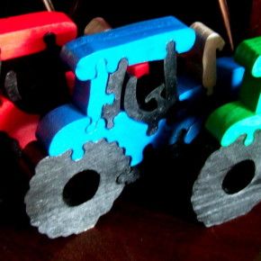 Des puzzles aux animaux de décoration, en passant par les motos, les tracteurs, les scooters à bascule, les avions, les chaussures (pour apprendre à lacer), les sempiternelles armes de pirates et de chevaliers pour les petits gars des Caraïbes, les petits héros de cape et d’épées. Tout peut se faire en puzzle ou à bascule…Il suffit de lui en parler.
