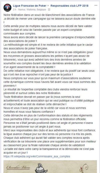 Le poker a assez « trinqué » dans différentes affaires de blanchiment, pour que l’ex-président à vie de l’association de poker LFP ne vienne en rajouter. Entre blanchir une comptabilité et remettre des comptes propres et approuvés par tous les adhérents, il y a une sacrée différence !