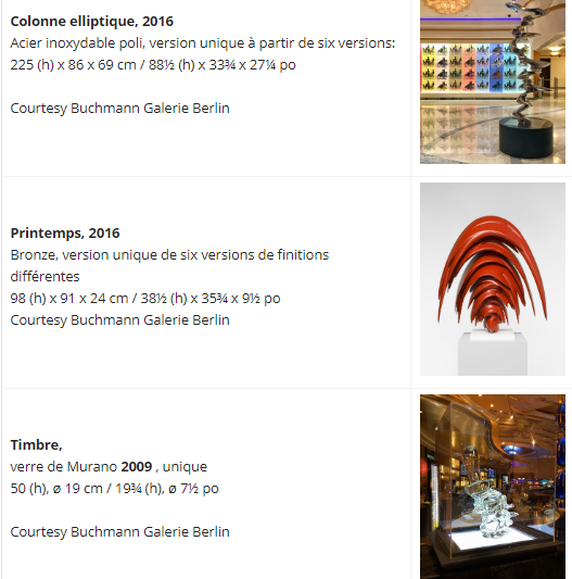 Des expositions surprenantes, que le Boss? M. Léon Tsoukernik, (antiquaire et grand amateur d’art) présente ou de ses propres collections ou de jeunes talents prodigieux : en ce moment, Tony Cragg.